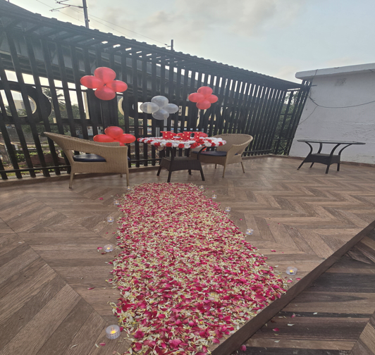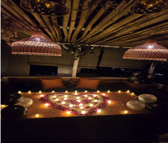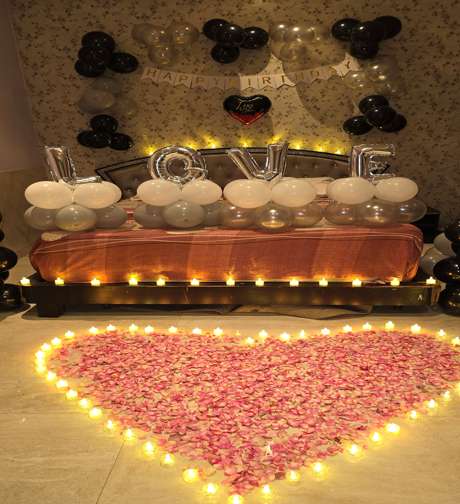 Private Room Setup, Decorated Venue With Music +Inclucing Rose Petals +Ballons + Cake + Lunch Or Dinner Decoration 6-Hour Package For Couples. Create unforgettable memories with your loved