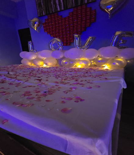Decorated Venue With Music +Inclucing Rose Petals + Candels + Ballon + Cake + Dinner + Decoration 2 Hours Package For Couples. Create unforgettable memories with your loved